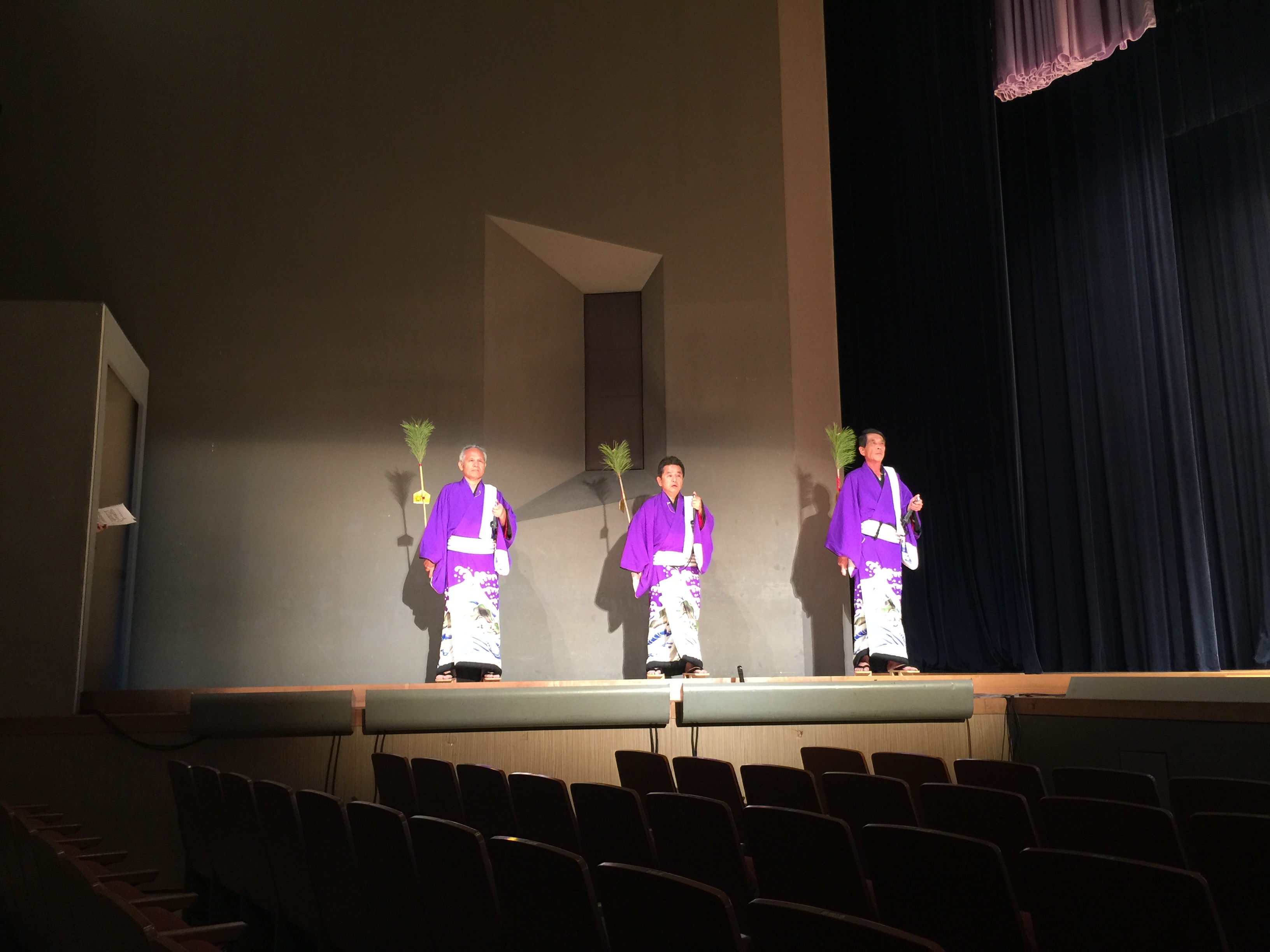 表題の練習の激励に、行ってきました。朝倉市議会からも議長や他の議員さん、さらには職員さんも参加しておりますので激励に行ってきました。盆俄は、現在,保存会が組織され,年1回の公演が行われています。「甘木盆俄」は,祇園社(須賀神社)の開山式に奉納された「風流(ふりゅう)」が,その起源とされています。