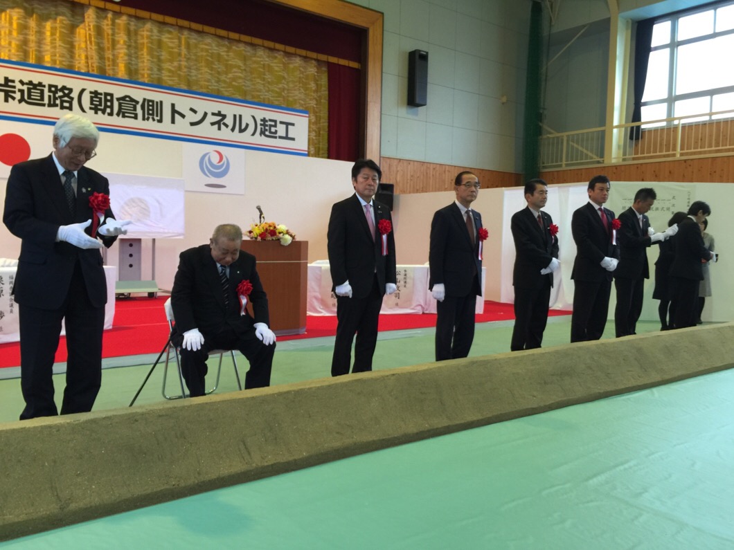 表題の式典が、秋月小学校で国会議員の先生方を始めとして沢山の来賓の参加で開催されました。地方整備局の部長様の挨拶のあとに来賓挨拶を受けました。秋月保育園の児童さんと来賓で鍬入れ式も開催されました。帰りはみぞれまじりで寒い日となりました。今日は、早朝より準備された全てのスタッフの皆さん大変お疲れ様でした。