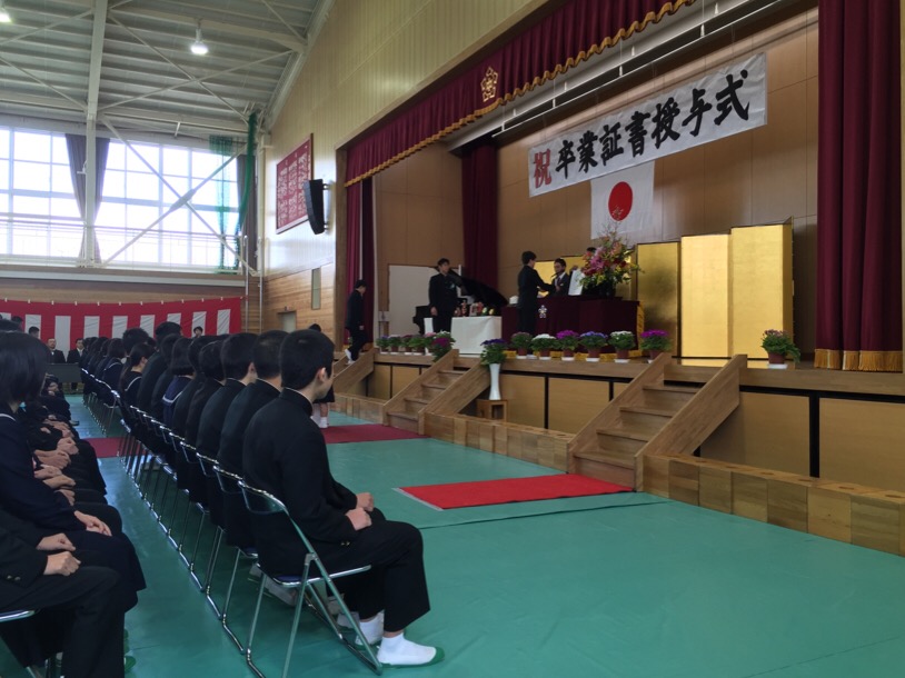平成27年度の南陵中学校の93名の卒業式が盛大に開催されました。私は、朝倉市議会議長の代理として祝辞を代読させていただきました。卒業生のみなさん本当におめでとうございます。またここまで子供たちを育てていただいたご父兄の皆様本当におめでとうございます。南陵中学校の校長先生を始め先生方子供たちをここまで導いてくださいまして本当にありがとうございました。すばらしい卒業式でした。