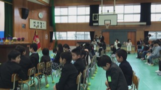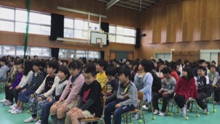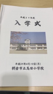 36名の新入生を迎え、馬田小学校体育館において入学式が盛大に開催されました。前回の卒業式の時のコメントに最後の二クラスとコメントしていましたが、今の2年生と新1年生の2学年が2クラスとなり、少し安心しました。保護者の皆様ご入学誠におめでとうございます。