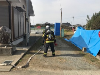11/13 秋の火災予防週間に伴う朝倉市消防団南陵ブロック火災訓練