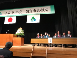 表題の表彰式に参加をしてきました。今回の表彰者は14名となっています。受賞された方は長年それぞれいろいろな活動されて朝倉市のために貢献されましたことを心より感謝申し上げます。受賞された皆さんおめでとうございました。