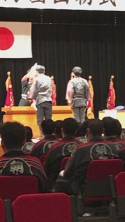表題の式典がサンライズ杷木で、関係者多数参加のもと盛大に開催されました。本日の団員の参加は団長以下515名との報告でした。市長式辞の後来賓式辞を受け表彰式に入りました。本日表彰受けた分団並びに団員並びにOBの方等おめでとうございました。消防団員確保が厳しい中一生懸命職務に邁進されてある団員の皆様に敬意を表します。本日はお疲れ様でした。