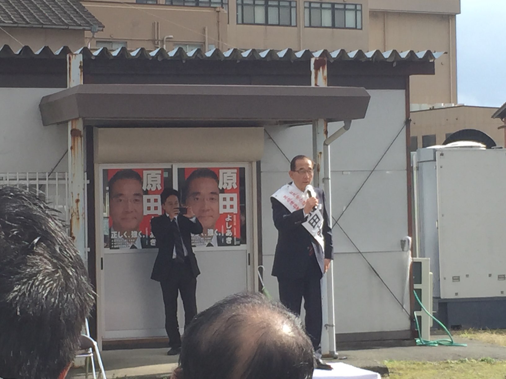 この4つの約束を掲げ一生懸命戦っております。26日の投票日は是非かげ哲也とお書きください。