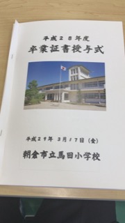3/17 朝倉市立馬田小学校 卒業証書授与式