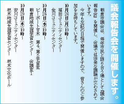 地域の活性化は、民間活用が不可欠との言葉に胸を打たれました。朝倉市もこの問題から逃げることはできません。しっかり知恵を出していかねばと痛感しました。