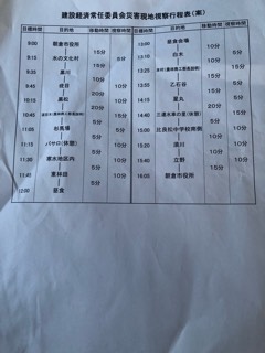 建設経済常任委員会災害現地視察に本日9時から行って参りました。水の文化村から高木に入り黒松を経由して道目木、杉馬場、寒水、東林田、白木、本村、乙石谷、松末小学校それから三連水車の里、平松中学校南側、須川、立野に1日かけて行ってまいりました。私は何回も現地に入っていますが、行くたびに景色が変わっているのを見て復旧復興が少しずつ進んでいるのがわかりました。しかしながら先行きは長いなと感じた次第です。広範囲に被害を受けているのでまだまだ相当な期間がかかると感じています。急ピッチで工事を進めていく必要があると痛感いたしました。