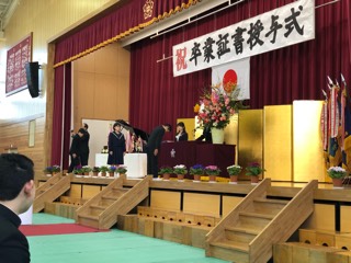 表題の式が、たくさんの関係者出席のもと厳粛に開催されました。今年は87名の卒業生が旅立って行きました。最後の方は涙で動けなくなる生徒がいて、感無量な感じでした。ご家族の皆様誠におめでとうございます。