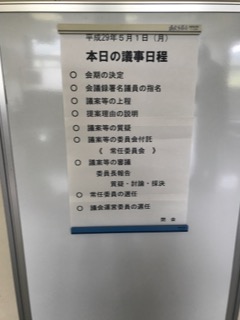 表題の臨時議会が、浅尾議長要請で開催されました。新議長に中島議員、副議長に梶原議員が新しく選出されました。浅尾議長及び柴山副議長は2年会大変お疲れ様でした。