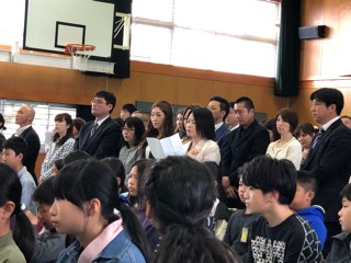 表題の式が盛大に開催され、本日70人の南陵中学校新一年生が誕生いたしました。きびきびした入場行進を見ているとこれから先成長が頼もしく思います。