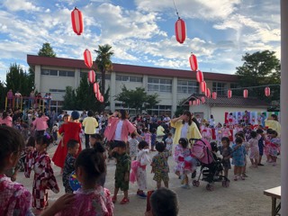馬田保育園の夏祭りが、園児多数の参加で盛大に開催されました。地域の役員の皆様方も来賓として多数参加されていました。この日に向けて園児たちも一生懸命練習した成果を見て私も感動いたしました。かわいい姿で踊っているのを見ると馬田地区も安泰だなと感じた次第です。