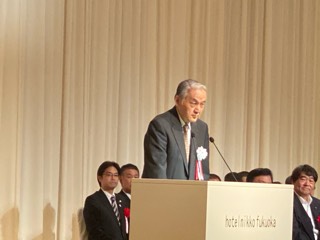 表題の祝賀会が、博多の日航ホテルで約1500人が集まって盛大に開催されました。蔵内相談役や太田元代議士の挨拶があり林市長の乾杯で祝宴に入りました。栗原議長、誠におめでとうございます。
