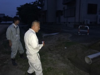 区会長さんたちと別れた後農林課に電話したら、7時過ぎでありながら、現場を見に来て頂きました。写真等を取り、明日対処しますとの早々の返事を頂きました。次の日早速連絡が有り、原因が市道からの雨水が原因なので建設課が、工事を行う旨連絡が有りました。素早い農林課の動きは素晴らしいと感じました。まさしく、市役所の仕事ぶりでした。市民のお役に立つ所と書き市役所ですから。