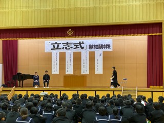 南陵中学校で表題の式が開催され、私も来賓として参加しました。3年生の選ばれた4人の発表がありました。皆自分の意志をしっかりと持ち頼もしいかぎりでした。私は特に矢野さんの、将来の気象予報士になりたいという思いに感動致しました。皆さん頑張って下さい。