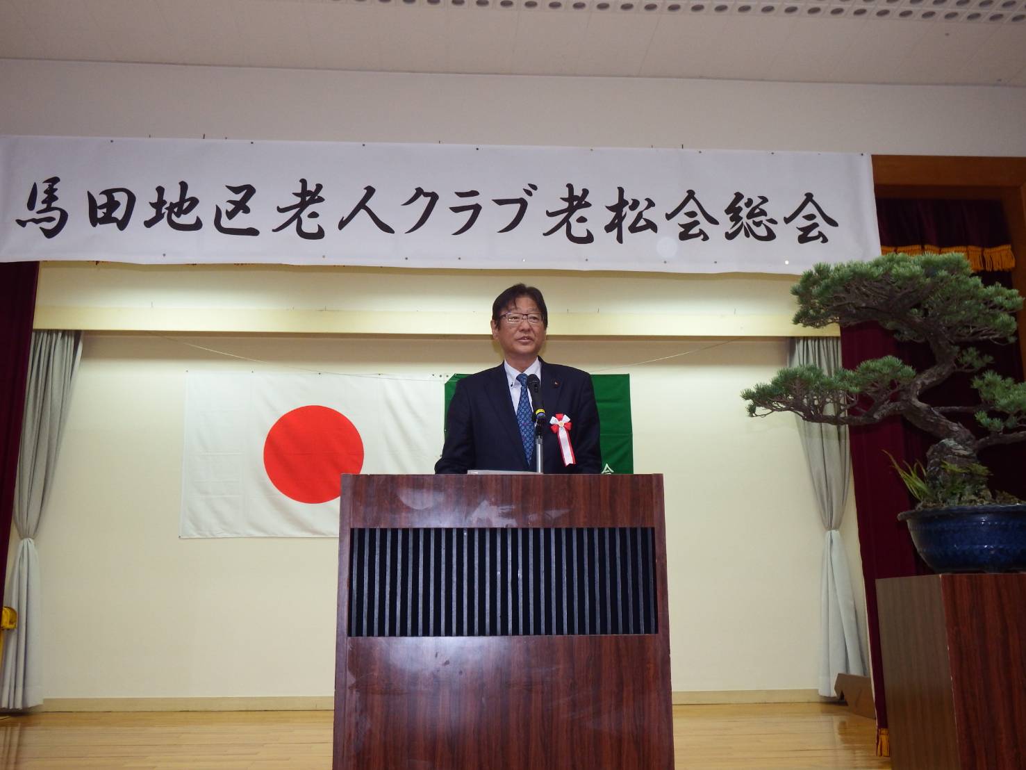 表題の総会が、馬田コミュニティセンターで盛大に開催されました。私も来賓として参加し、今回の市議会議員選挙においては老松会の皆様方に多大なるご支援ご協力お力添えをいただき無事当選することができました。本当にありがとうございました。