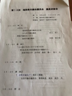 7/30 第13回福岡県市議会議長会議員研修会
