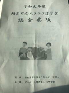5月30日木曜日14時〜 令和元年度朝倉市老人クラブ連合会総会