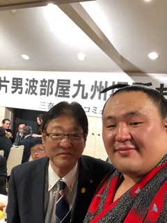 千秋楽を待たずに表題の送別会が、三奈木地区コミュニティ協議会主催で盛大に開催されました。毎年九州場所は、朝倉市に部屋を構えて下さり勇気を与えて頂く片男波部屋です。玉鷲関も9勝6敗と勝ち越しました。また来年もお会い出来ることを楽しみにしています。