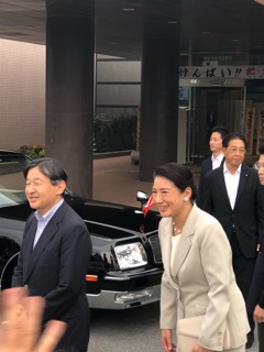 皇太子殿下ご夫妻が、杷木のらくゆう館に来られました。朝倉市市長や朝倉市議会議長は直接お出迎えをし、私たち議員もお出迎えお見送りをさせていただきました。今年は、いろんな所で災害があり、朝倉市の災害も忘れ去られているかと思っていた時にお越し頂き感謝申し上げます。