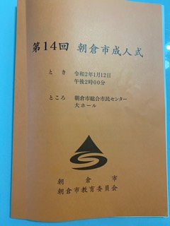 成人式に参加しました。今年は499名の方が成人されました。おめでとうございます。皆さんはこれから朝倉市出身である事を誇りに思い、しっかりと支えていかれますことをお願い致します。