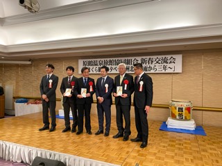 表題の交流会がホテルパーレンス小野屋で盛大に開催されました。理事長の挨拶の後蔵内勇夫県議会議員及び栗原渡県議会議長及び林朝倉市長等の来賓挨拶の後支援金贈呈も行われ鏡開きで乾杯になりました。サプライズで九州北部豪雨後に杷木地域に入り多大な貢献をした梶原議員に花束贈呈がありました。
